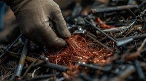 【仕分けが命!価値を上げる】 現場に届いた金属は、「雑品(ごちゃ混ぜ)」ではなく「単一品(ピュアな資源)」になるよう、徹底的に分別する。この一手間が、買取価格とリサイクル率を決定づける最重要作業。